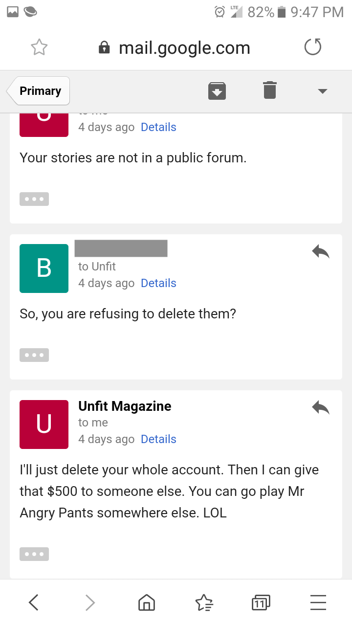 Update 3/01: The editor sent me a Paypal transfer that totaled $0.00 after fees. Perhaps this is a petty way of reminding me that I didn’t pay? Or an attempt to verify my email address? Who knows? There’s no note with the transfer. I have refunded it, to make clear that I have no financial relationship of any kind with him.